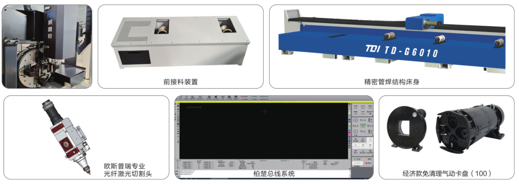 TD-G6010型三維激光切管機![]() ![]() 機械特點 Machinery Features ■ 專門針對管材類鈑金加工研發(fā)的一款中端高配激光切管機型。少尾料設(shè)計,增大切割范圍,減少尾料殘留,降低材料成本??蛇x配手動輔助上料裝置。 ■ 以多種方式優(yōu)化制造工藝。在單個操作中,可以創(chuàng)建穿孔和復(fù)雜輪廓。此外,管可以切成多個部分。 性能參數(shù) Performance Parameter